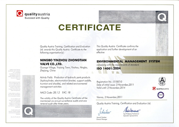 在全體員工的共同努力下,中天順利通過ISO 14001:2004環(huán)境管理體系認證。