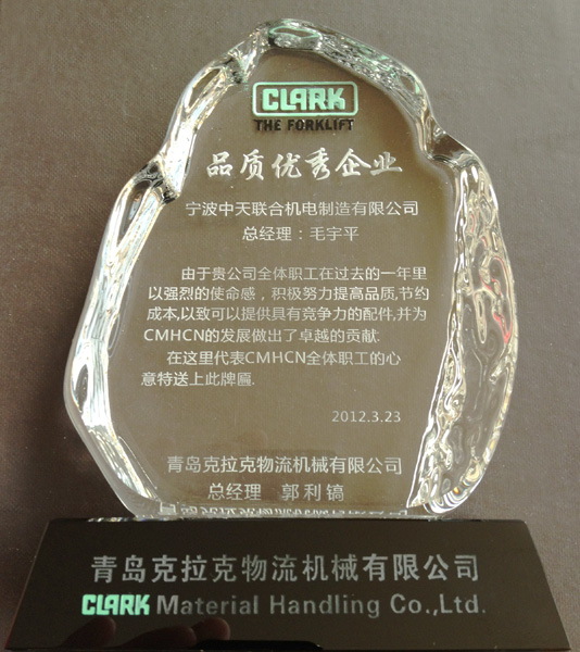 在本月召開的青島克拉克物流機(jī)械有限公司供應(yīng)商會(huì)議中,中天公司在30多家供應(yīng)商中憑借優(yōu)秀的質(zhì)量、成本及交貨率被評(píng)為品質(zhì)優(yōu)秀企業(yè)。此次會(huì)議共設(shè)兩名優(yōu)秀供應(yīng)商,中天公司為獲得此殊榮的兩家企業(yè)之一。