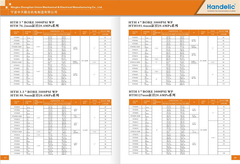 為適應市場對高品質工業(yè)標準油缸的需求,中天公司近期推出了“海德力克”品牌系列標準油缸,產品涉及拉桿油缸和焊接型雙作用油缸。該系列產品結構簡單,客戶可按需求自行選購行程、缸徑、工作壓力等并安裝。“海德力克”系列產品全部采用高品質進口密封件,高品質原料,并且嚴格按照國際標準精工制作。“海德力克”承諾提供多達18個月的質量保證,并提供專業(yè)安裝指導和技術支持,歡迎選購。